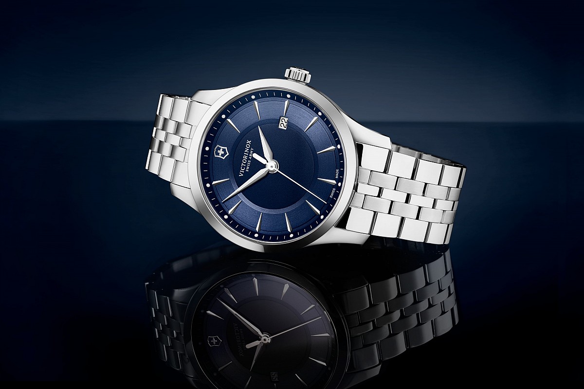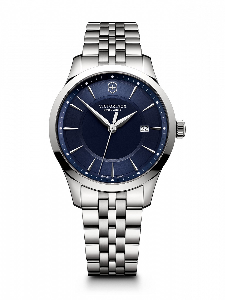 Victorinox Alliance jsou kvalitní švýcarské hodinky na kovovém náramku. Modrý číselník se zlacenými ručkami s luminiscencí je kryt safírovým sklem s antireflexní vrstvou, zaručující perfektní čitelnost. O bezchybný chod se stará švýcarský quartzový strojek Ronda 715 s funkcí zobrazení času a data. Nerezové pouzdro má průměr 40 mm. Hodinky jsou vodotěsné do 10 ATM.