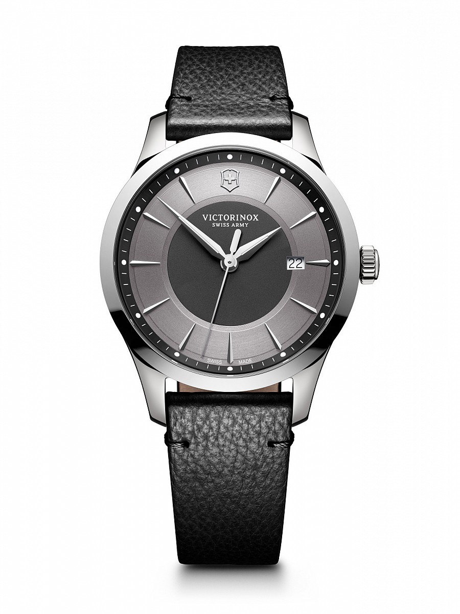 Victorinox Alliance jsou kvalitní švýcarské hodinky na koženém řemenu. Antracitový číselník se stříbrnými ručkami s luminiscencí je kryt safírovým sklem s antireflexní vrstvou, zaručující perfektní čitelnost. O bezchybný chod se stará švýcarský quartzový strojek Ronda 715 s funkcí zobrazení času a data. Nerezové pouzdro má průměr 40 mm. Hodinky jsou vodotěsné do 10 ATM.