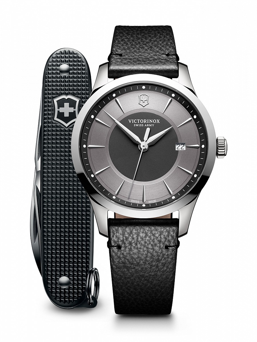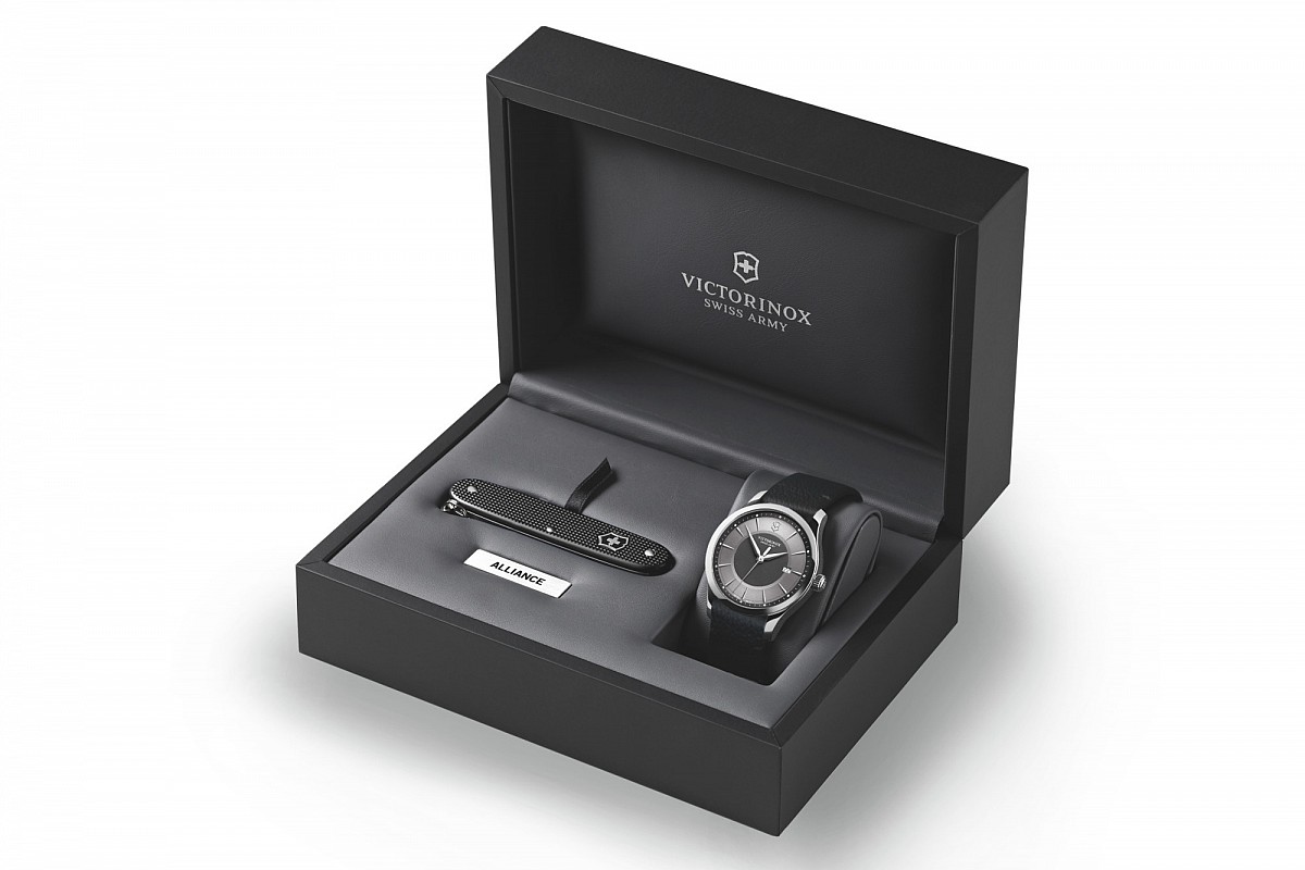 Victorinox Alliance jsou kvalitní švýcarské hodinky na kovovém náramku. Antracitový číselník se stříbrnými ručkami s luminiscencí je kryt safírovým sklem s antireflexní vrstvou, zaručující perfektní čitelnost. O bezchybný chod se stará švýcarský quartzový strojek Ronda 715 s funkcí zobrazení času a data. Nerezové pouzdro má průměr 40 mm. Hodinky jsou vodotěsné do 10 ATM. Součástí balení je kvalitní kapesní nůž Victorinox.