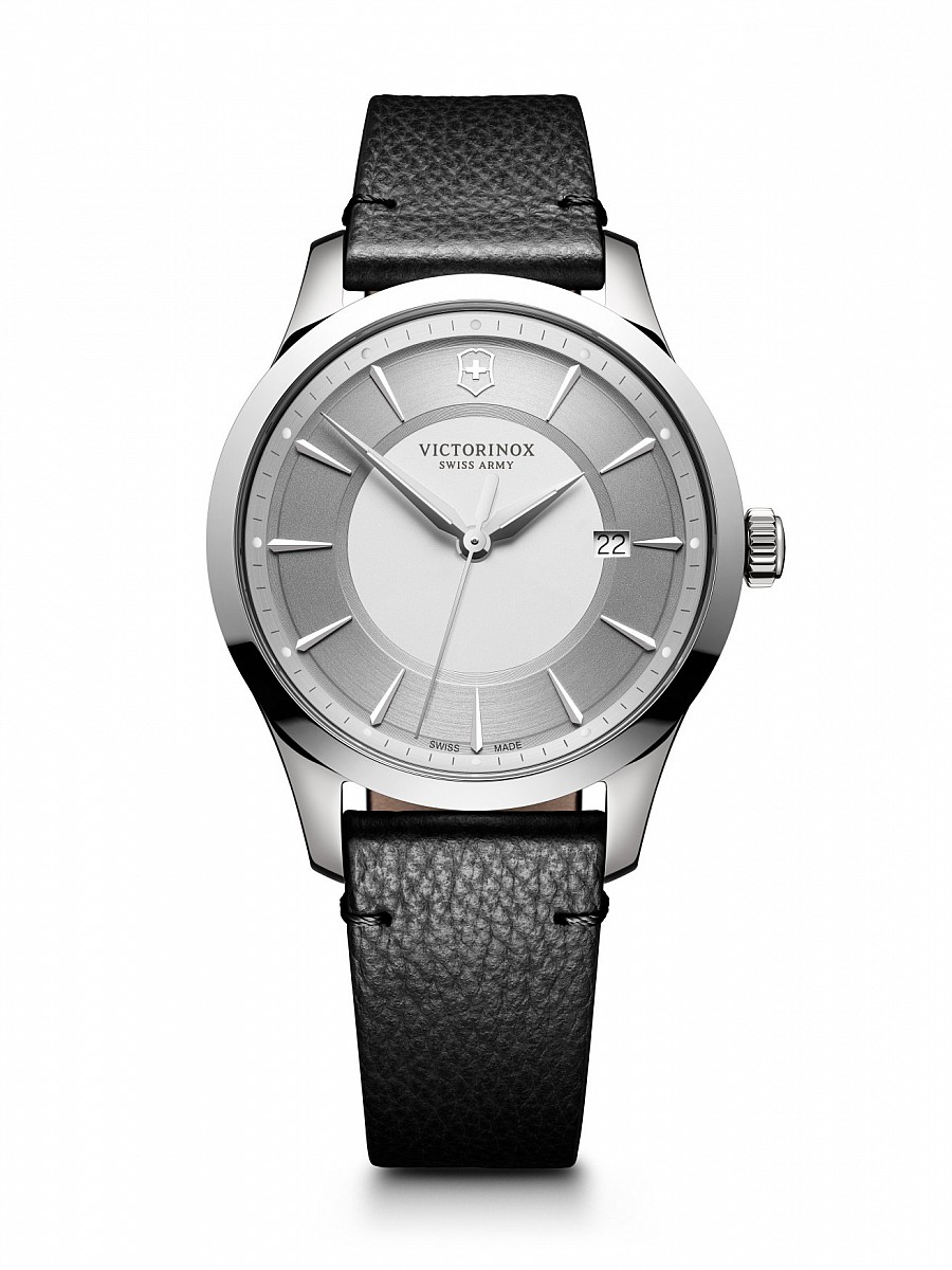 Victorinox Alliance jsou kvalitní švýcarské hodinky na koženém řemenu. Stříbrnýčíselník se stříbrnými ručkami s luminiscencí je kryt safírovým sklem s antireflexní vrstvou, zaručující perfektní čitelnost. O bezchybný chod se stará švýcarský quartzový strojek Ronda 715 s funkcí zobrazení času a data. Nerezové pouzdro má průměr 40 mm. Hodinky jsou vodotěsné do 10 ATM.